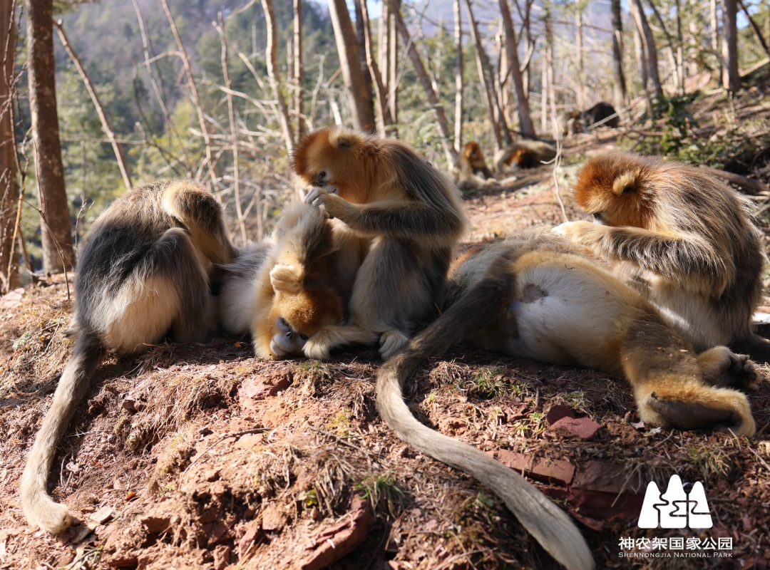 幸福的猴群徜徉在冬日暖阳里