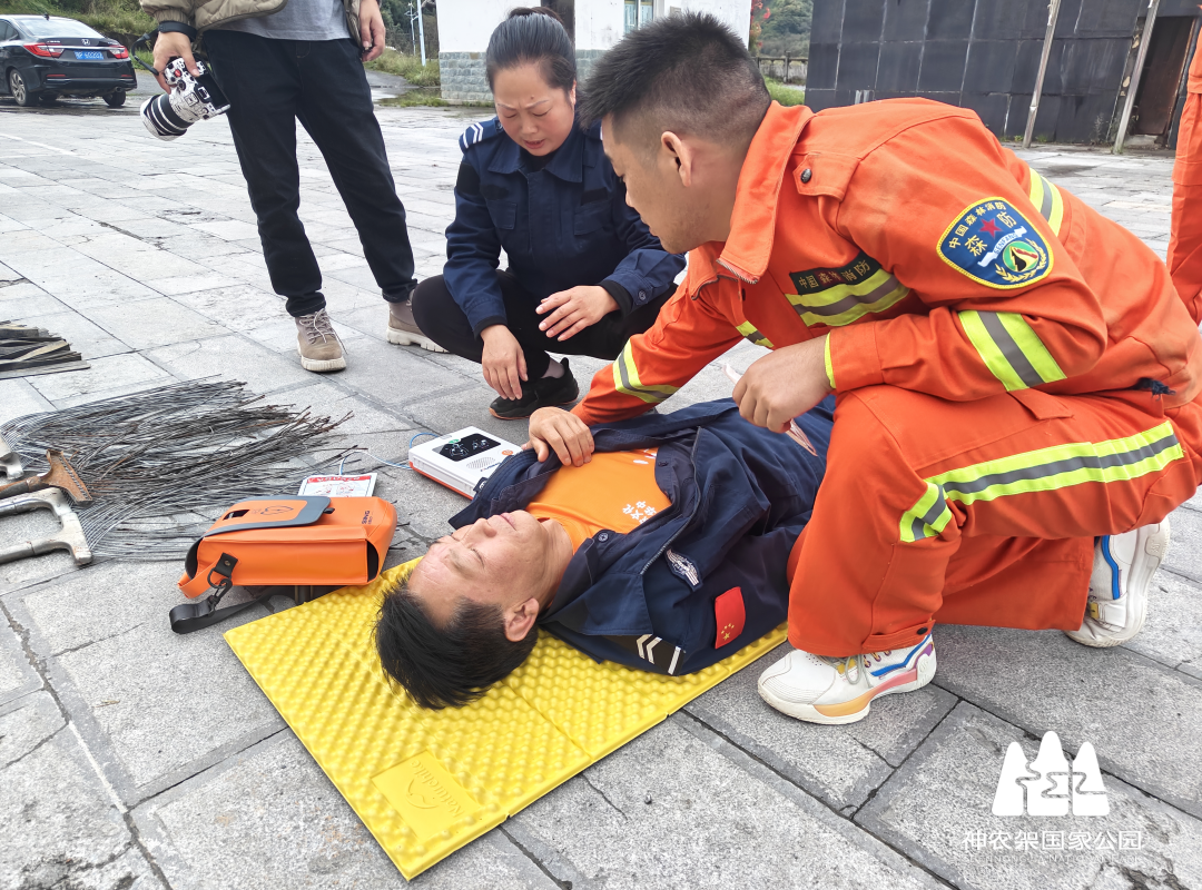 专业防火救援人员开展理论培训,讲解森林火灾成因、预防措施及风力灭火机、高压细水雾等防火设备操作要领;大九湖旅游有限公司员工补充心肺复苏、AED除颤仪使用等应急救援知识并现场演示,为实战操作奠定科学安全基础。