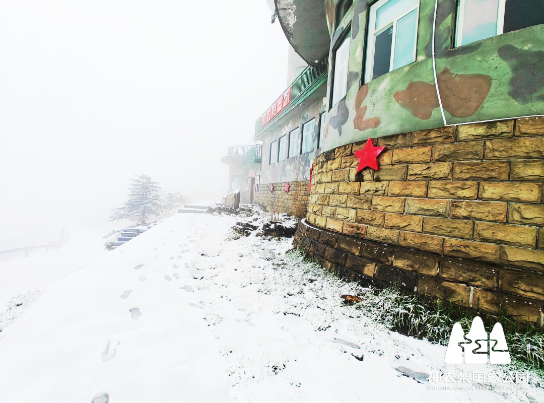 4月28日神农顶突降大雪,漫天飞雪短短数小时内便将群山装点成银装素裹的世界,气温骤降至零下。驻守“华中屋脊”的瞭望塔民兵们不畏风雪、迎难而上,默默坚守在深山一线,守护山林安宁与游客出行安全。