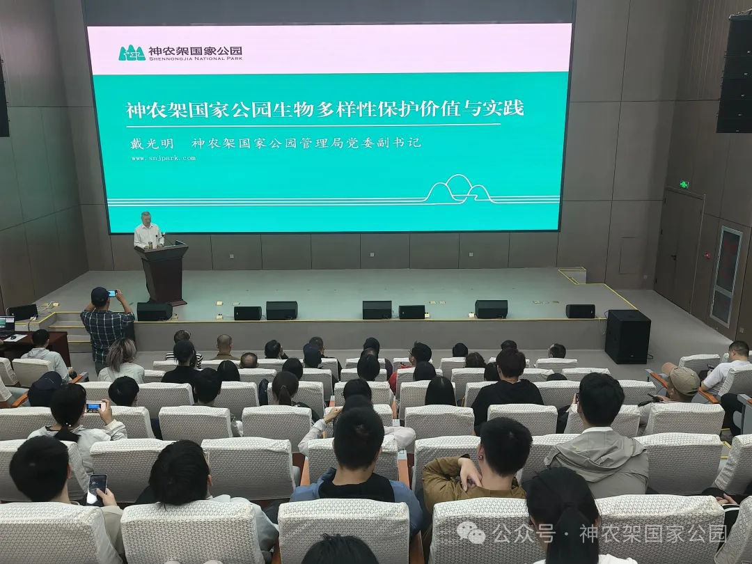 报告会上,神农架国家公园管理局党委副书记戴光明以《神农架国家公园生物多样性保护价值及实践》为题作专题报告。他指出,神农架作为全球同纬度生物多样性最丰富的地区之一,拥有高等维管植物4329种、脊椎动物749种,是川金丝猴最东端栖息地,现存11个金丝猴种群共1618只,堪称"物种基因库"和"绿色奇迹"。