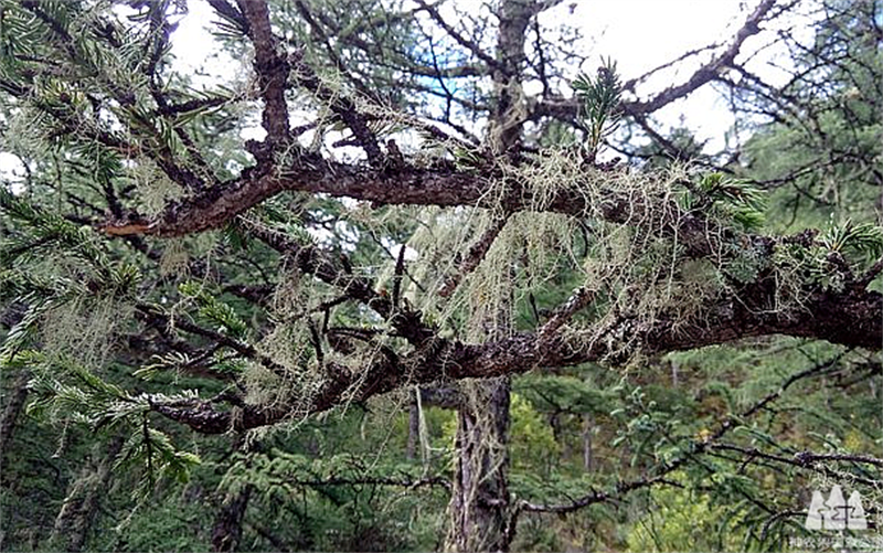 神农架的松萝也被称为“猴子挂面”。川金丝猴在吃不到鲜果和嫩叶的冬日,会以松萝为食。当严寒袭来,草木不生之时,松萝依然能顽强生长,真菌和藻类的互补性使松萝生命力极为顽强,正因为它耐严寒的生态适应性,使松萝成为大自然食物链中不可或缺的一环。它不仅能帮助金丝猴扛过饥寒,而且松萝和裸子植物比较起来,它的纤维含量更低,更易于消化。不过,松萝的口感对于猴子应该不那么美妙,因为春天来临,食物一旦丰富起来,川金丝猴食用松萝的量便大大降低,也正因如此,在神农架的原始森林中才会保留许多松萝飘飘的美景。(文/王蕾)