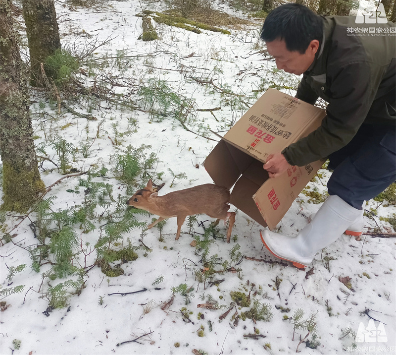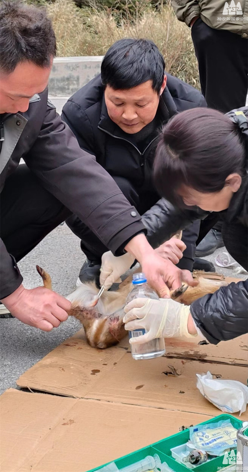 3月4日下午,小龙潭野生动物救护站收到神农顶管理处板桥管护中心送来的一只受伤黄麂。