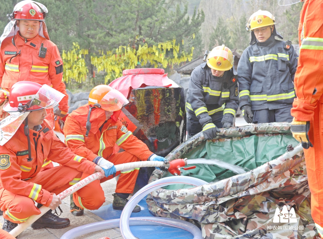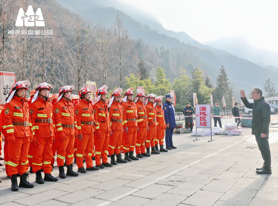 1月28日,神农架国家公园管理局在神农坛开展“山地串联水泵与无人机协同扑火演练”。木鱼消防救援站现场观摩指导,全局80余人参加演练。
