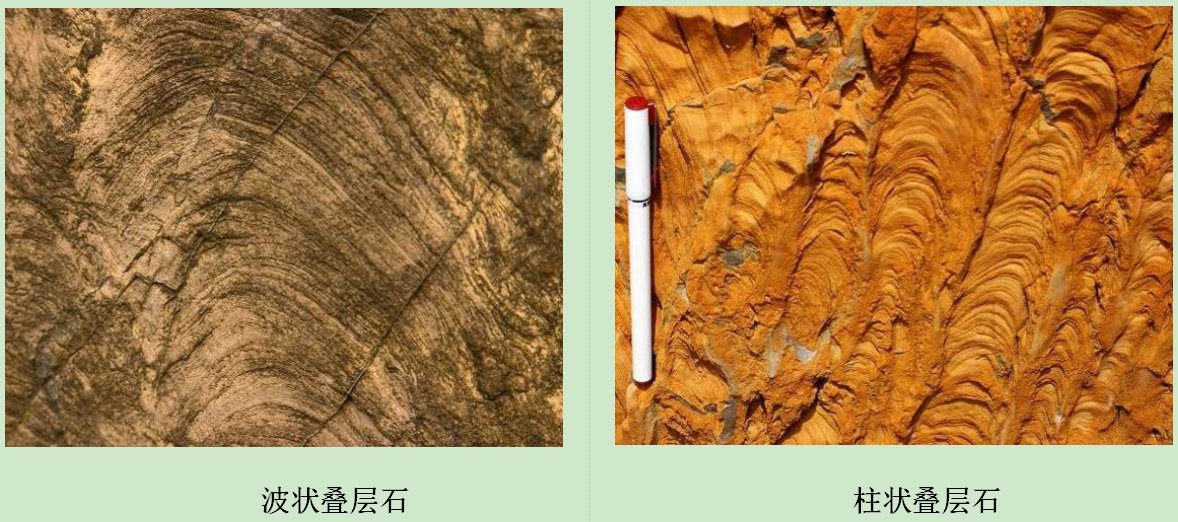 神农架群地层中发育了地球上最古老的生物群落——蓝藻形成的叠层石。叠层石是前寒武纪(5.4亿年以前)碳酸盐沉积中最常见的一种“准化石”。说叠层石是“准化石”,是因为它并不是生物的遗体,而是一种原始藻类生活的遗迹。这些原始藻类附着于海底的石头上,在生命活动过程中,捕获水中的微小颗粒,周期性地建造层层相叠的微生物沉积构造。