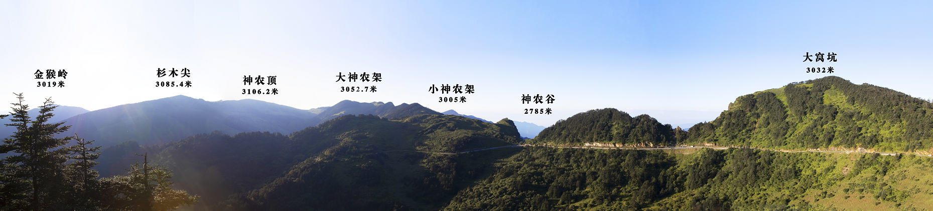 神农架位于湖北省西北边陲,扬子板块北缘、秦岭-大别山造山带东段,扬子地台与中朝地台两大块体碰撞拼合的位置,山脉呈东西向延伸,总体地势西南高,东北低,河谷深切,沟壑纵横,层峦叠嶂,山势雄伟,大小山峰187座,山峰多在海拔1500米以上,其中2500m以上山峰32座,3000m以上山峰6座,最高峰神农顶海拔3106.2m,被称为“华中第一峰”,区内最低点石柱河海拔只有398米,平均海拔1800m,相对高差达2700余米。