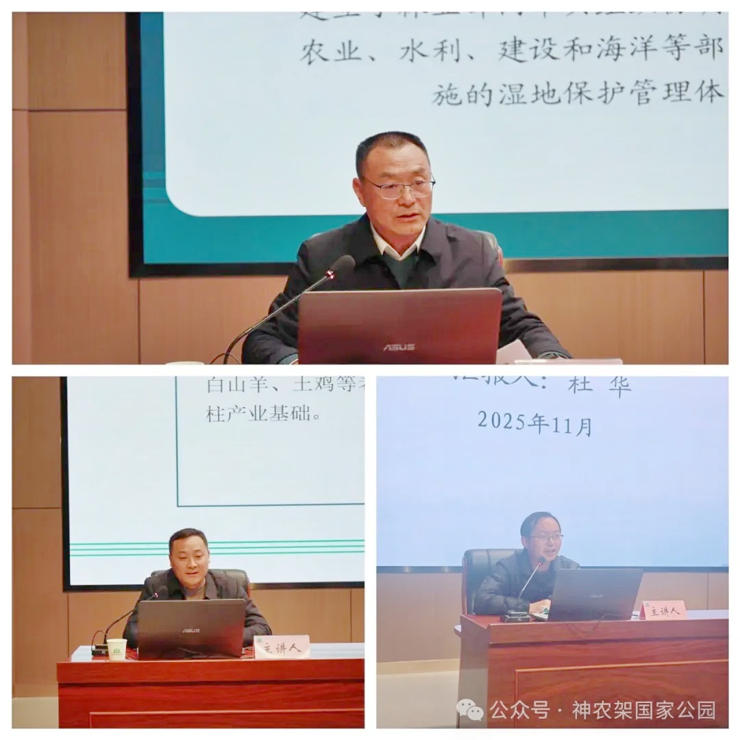 木鱼管理处主任沈昌魁讲授《自然资源暨林草湿资源管理体制重构》,系统梳理了我国自然资源管理体制的演变,重点解读“两统一”职责与“三区三线”管控要求,阐释林业在生态国土建设中的核心作用,帮助职工理解神农架生态保护的制度逻辑。