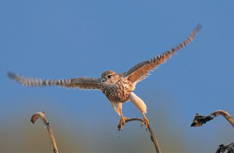 隼科隼属,国家二级重点保护野生动物。小型猛禽,体长27~32厘米。栖息于开阔的林缘、林中空地和有稀疏树木的开阔地方。主要以昆虫和鼠类等小型动物为食。常单独活动,叫声尖锐。飞行速度非常快。神农架有分布记录,但数量很少,不易见。