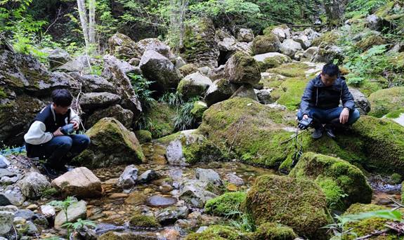 图 4 官门山景区溪流中的巫山巴鲵(Liua shihi)