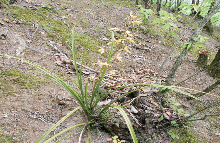 兰科兰属,国家二级重点保护野生植物。多年生草本植物,植株挺拔,花茎直立或下垂,花大色艳,主要用作盆栽观赏。适用于室内花架、阳台、窗台摆放,更显典雅豪华。神农架分布于海拔400~1200米的湿润但排水良好的透光处。